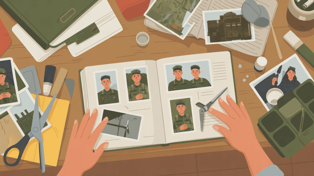 Совет бывалого: начинайте собирать материалы для альбома с первых дней службы. Фотографируйте все интересные моменты, сохраняйте билеты, записки, даже обертки от армейских конфет — все это потом станет ценными артефактами.